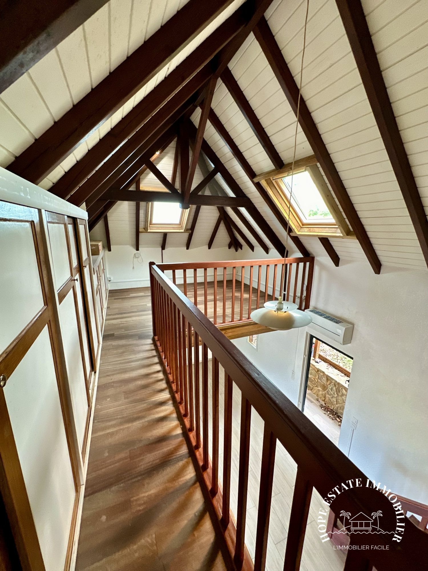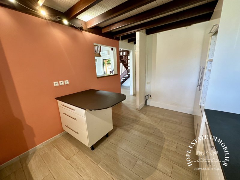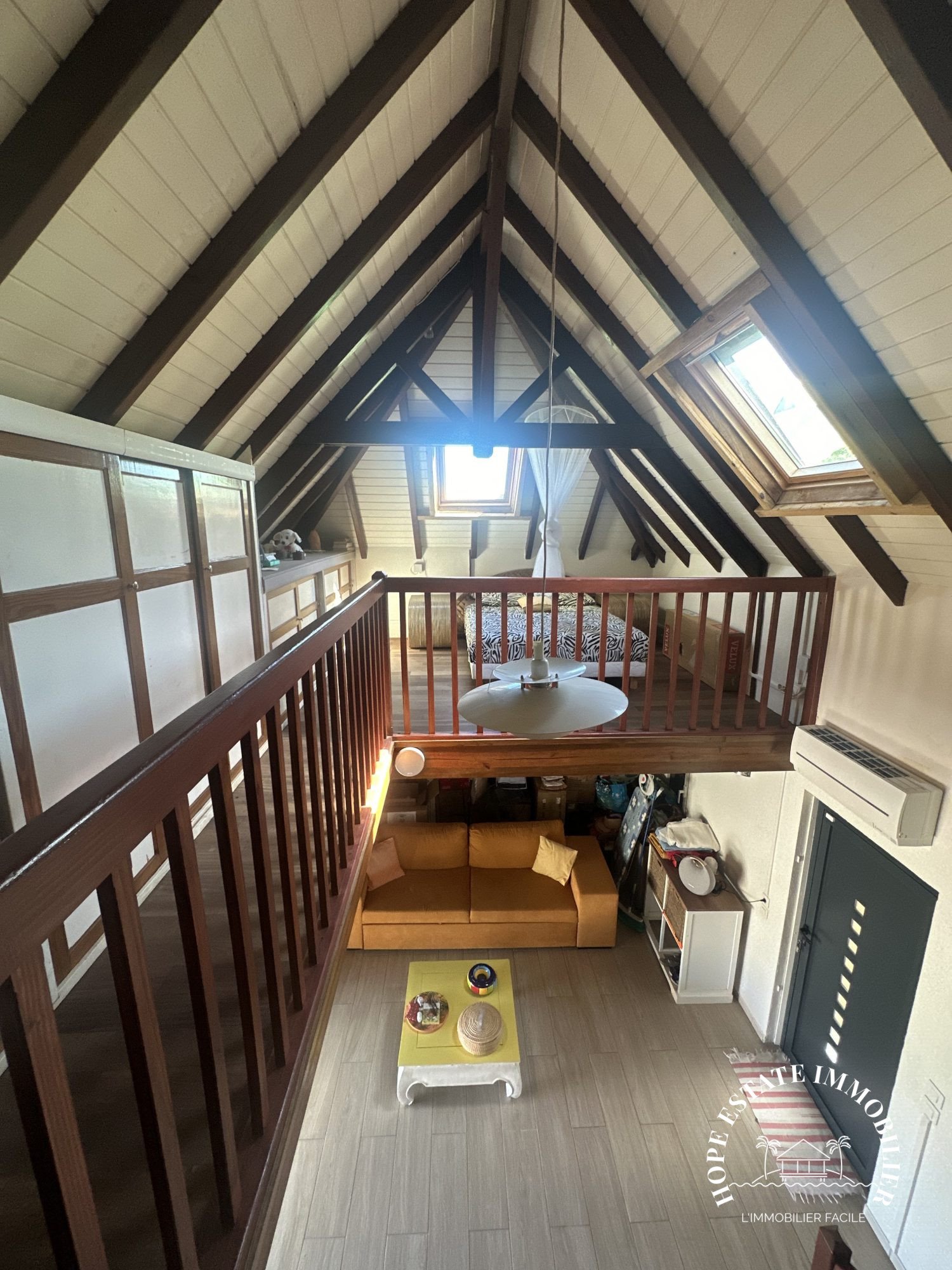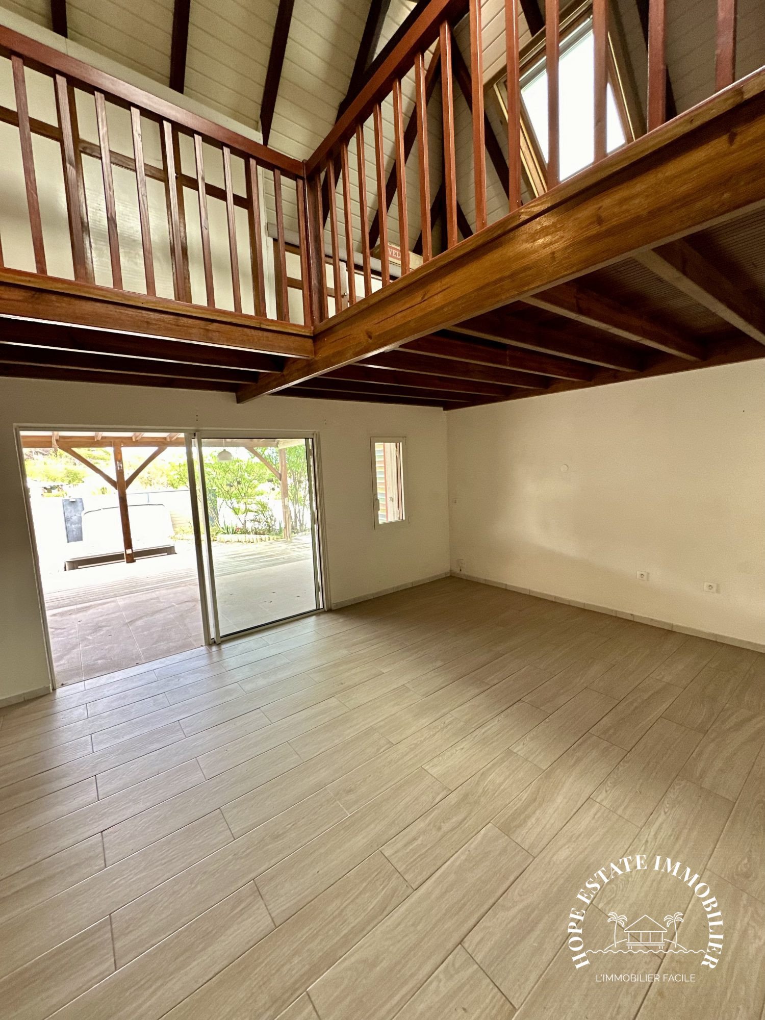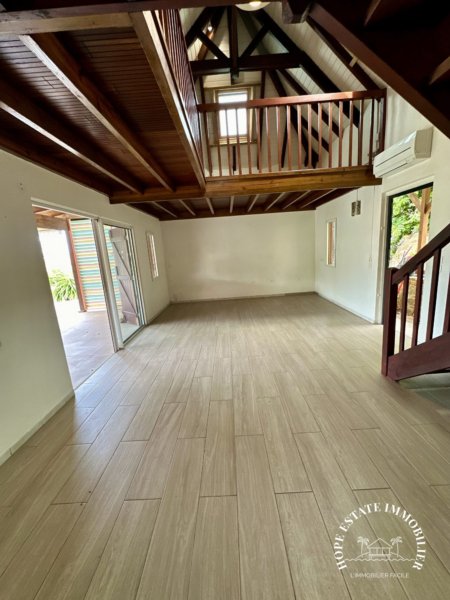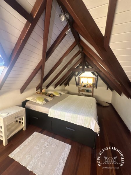 Elle se compose d’une spacieuse pièce de vie lumineuse avec une cuisine aménagée et entièrement équipée, d’une salle d’eau moderne et d’une élégante master room. À l’étage, une mezzanine pouvant servir de chambre d’appoint ainsi qu’une grande chambre avec placards complètent ce bien