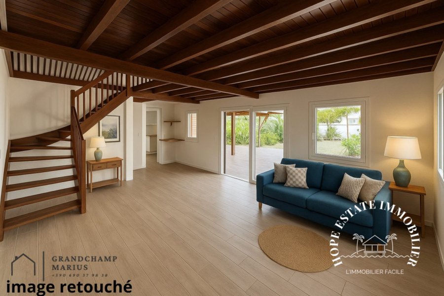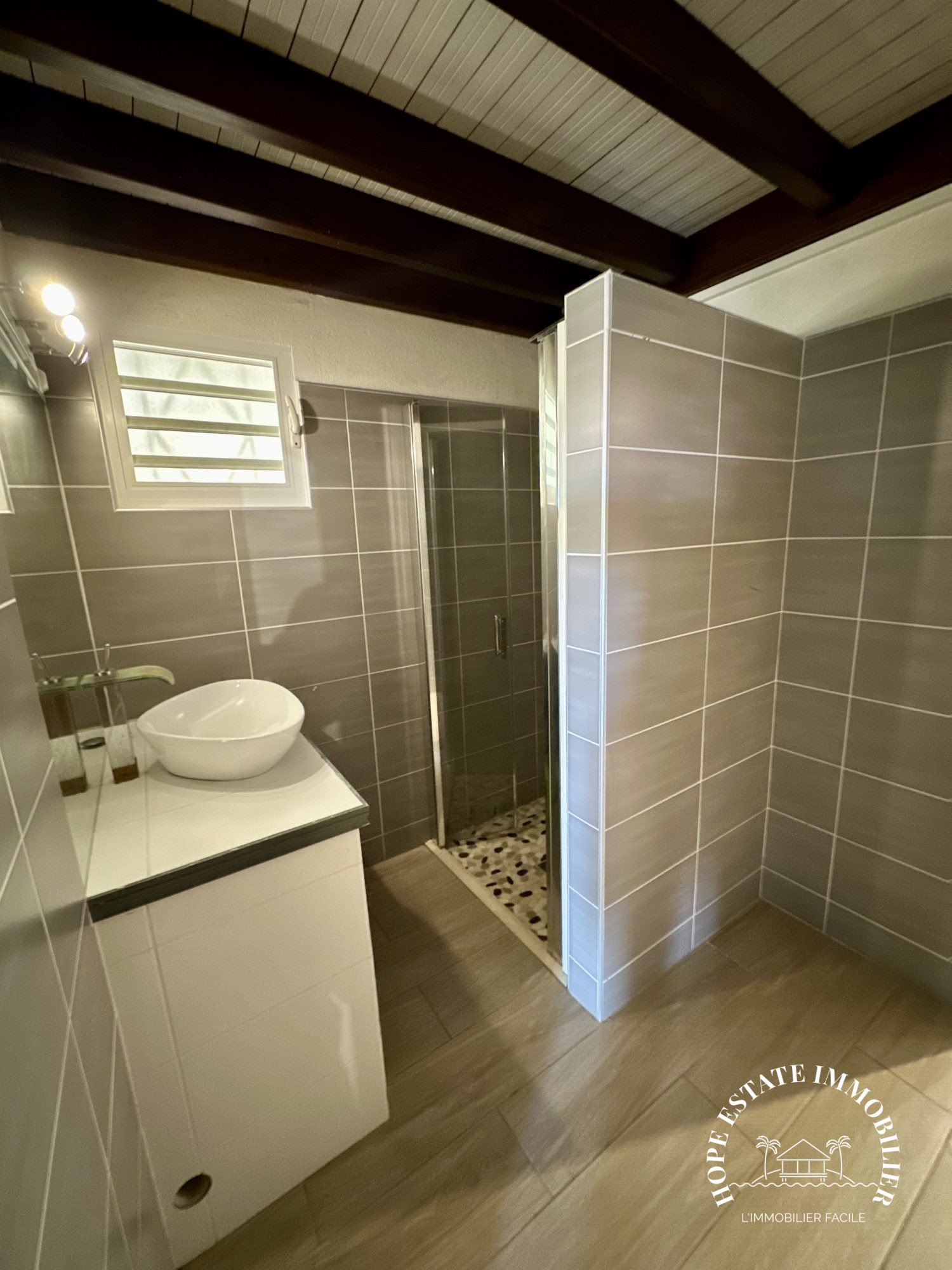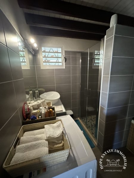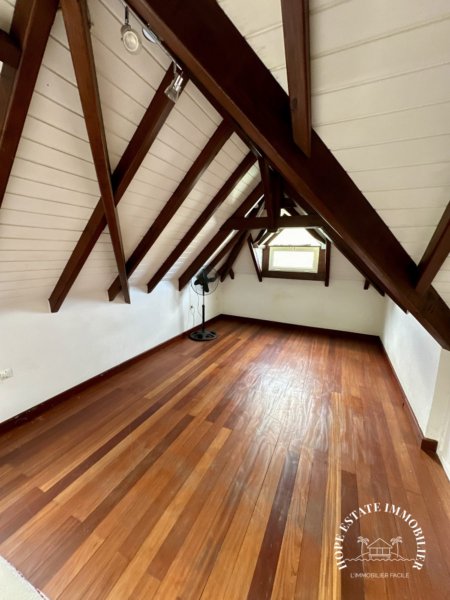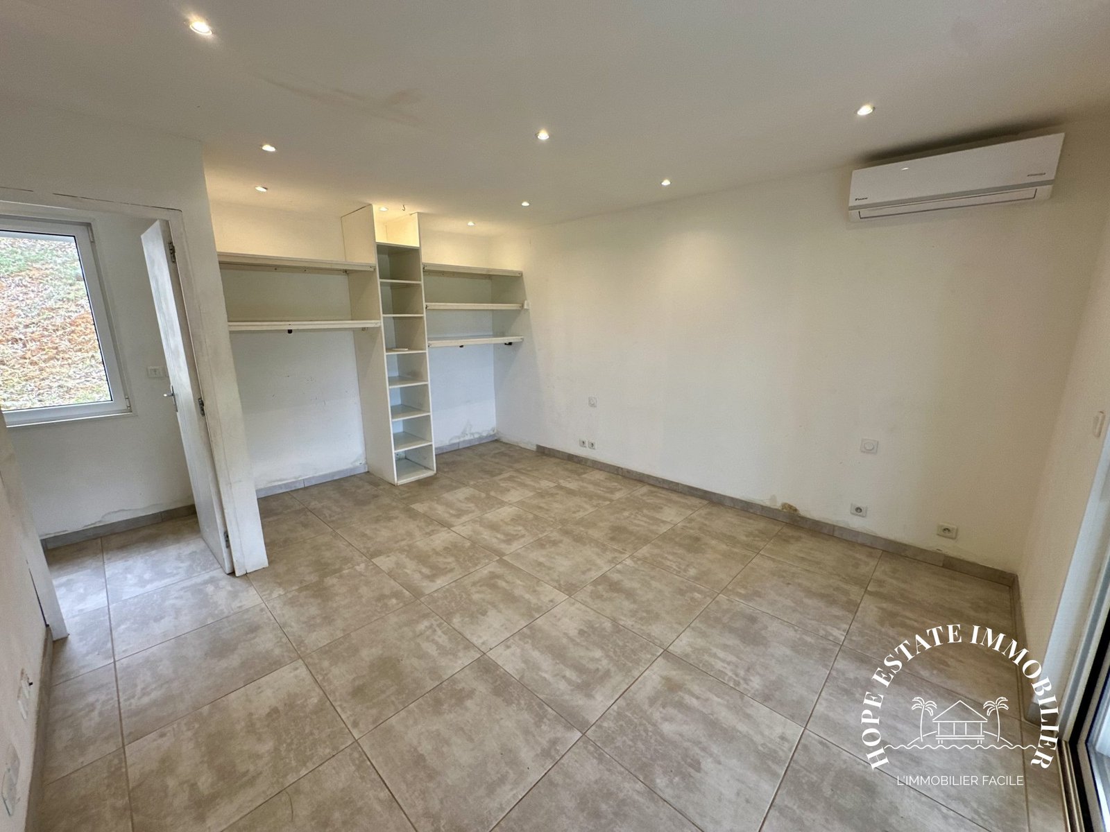 Elle se compose d’une spacieuse pièce de vie lumineuse avec une cuisine aménagée et entièrement équipée, d’une salle d’eau moderne et d’une élégante master room. À l’étage, une mezzanine pouvant servir de chambre d’appoint ainsi qu’une grande chambre avec placards complètent ce bien