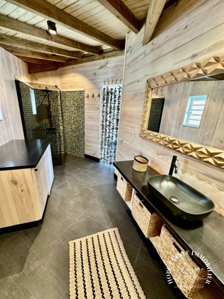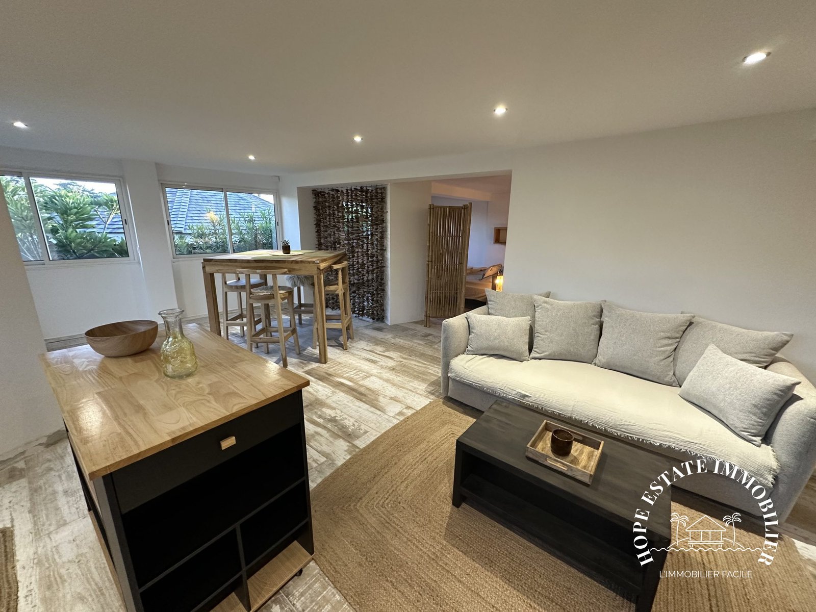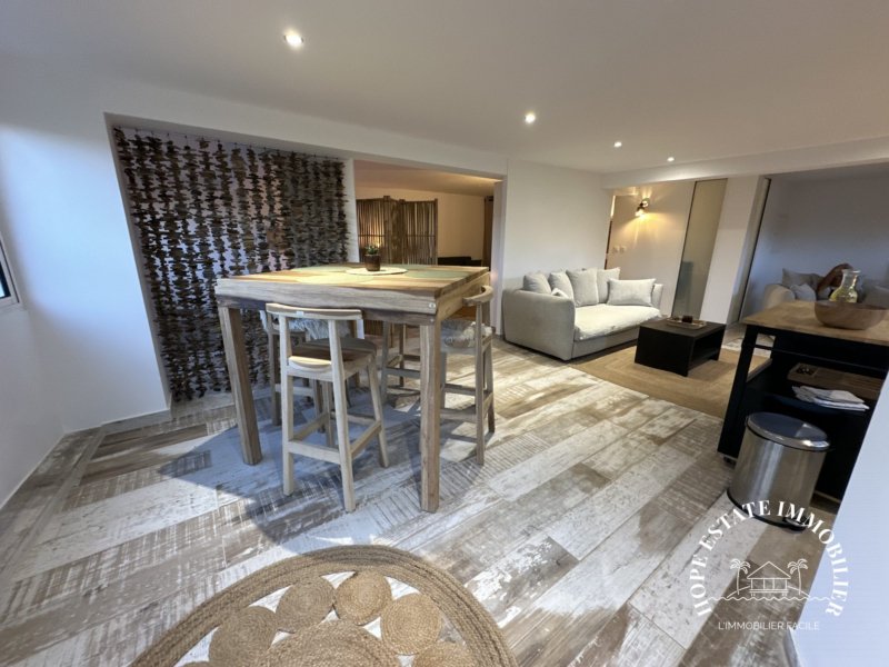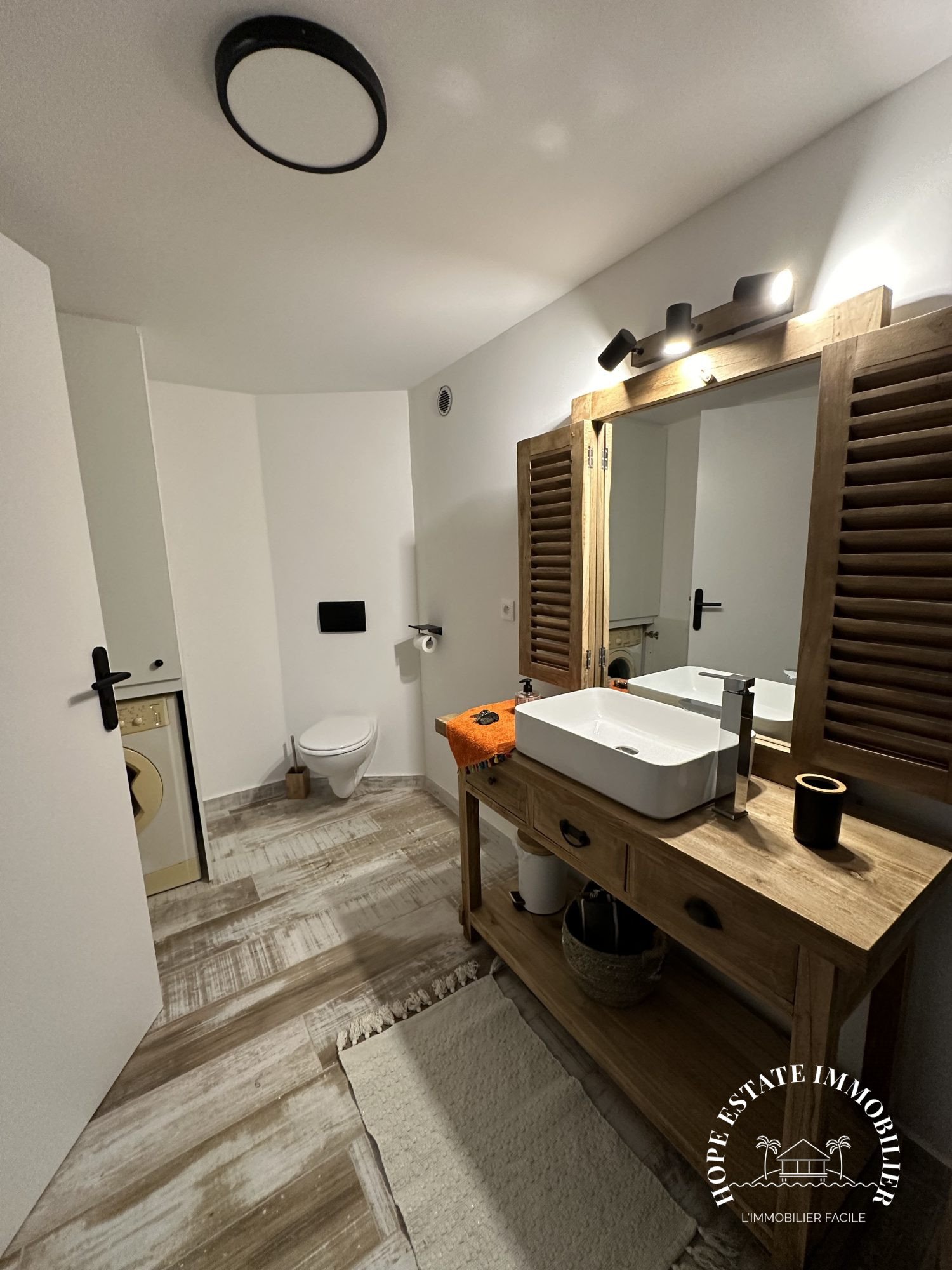 Au rez-de-chaussée, un appartement T2 indépendant de 87 m², entièrement neuf et équipé, complète l’ensemble. Il se compose de :